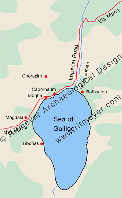 The Sea of Galilee is the backdrop for innumerable stories in the Gospels. Jesus based his ministry in Capernaum, on the northern shoreline of the lake. Several communities mentioned in the Gospels are scattered in that area. The “sea” is a lake, about 13 miles from north to south and seven miles east to west in its northern portion. Though it was squarely in the middle of a very conservative Jewish region of the Galilee, Capernaum was also connected to people of different cultures. A Roman garrison and tax office was headquartered in Capernaum, in part because a major road came through the city. Travelers and traders moving between Asia and Africa would have been a common sight. The lake sits in a natural “bowl,” and is 700 feet (210 meters) below sea level.